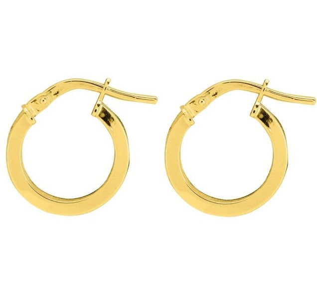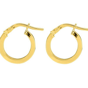 Par de aros de oro 9k de sección rectangular, 3mm de ancho x 1mm de espesor