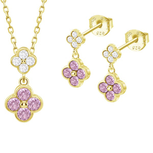 Pendientes y colgante de plata de ley Lotus Silver chapado en oro con flores de circonitas rosa