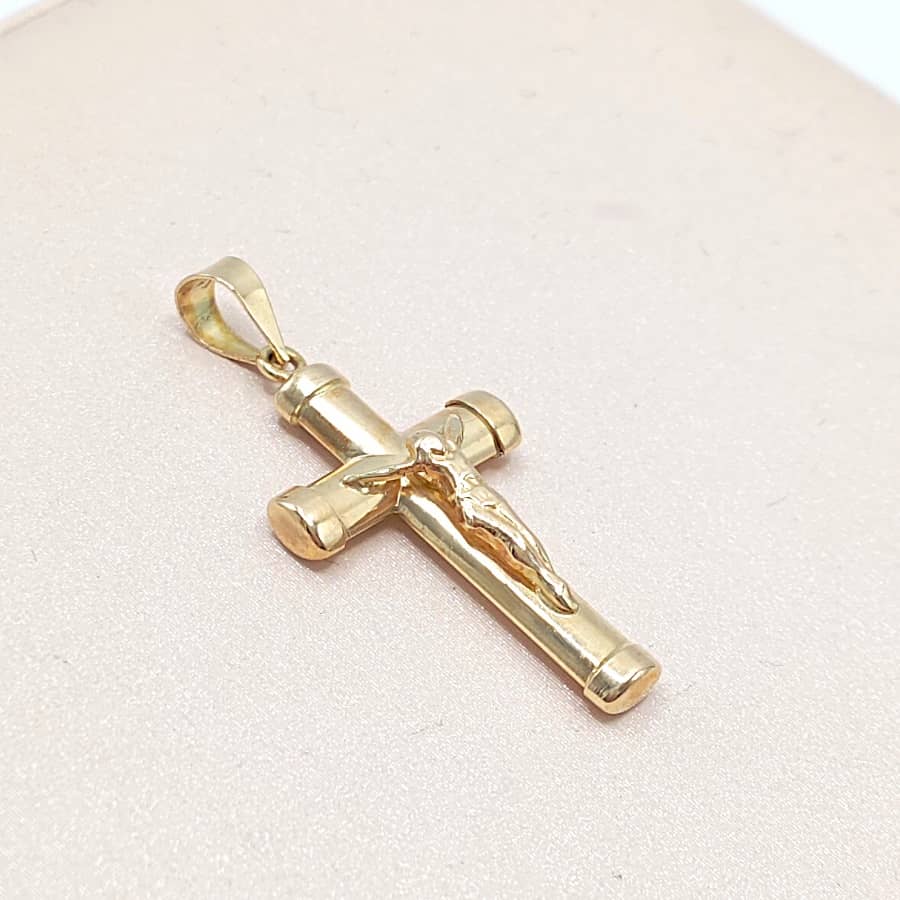 18K YELLOW GOLD CROSS TUBE WITH CHRIST