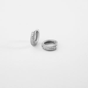 Pendientes de plata aro pequeño acabado de circonitas 11 mm de diámetro