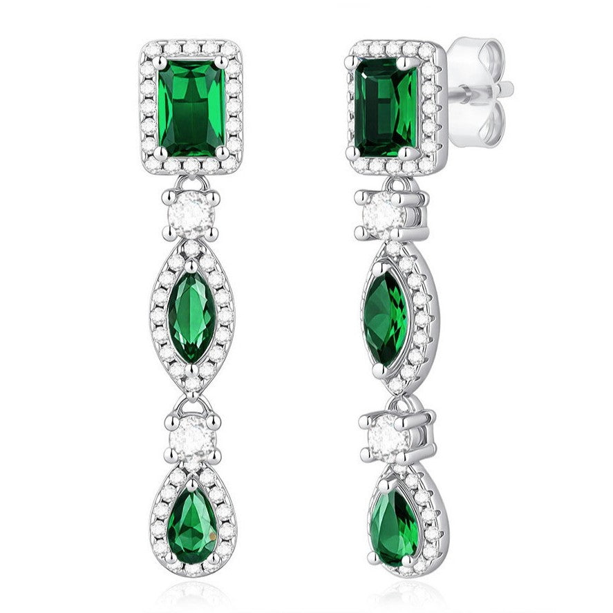 Pendientes de plata largos con cierre presión y circonitas en color esmeralda