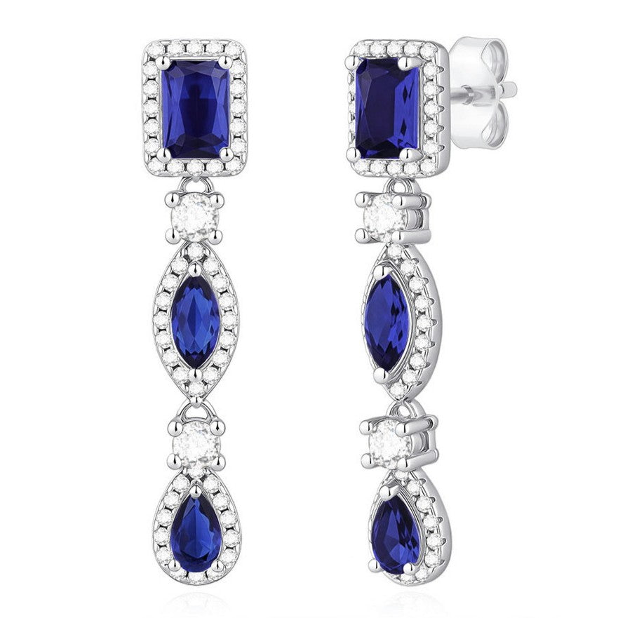 Pendientes de plata largos con cierre presión y circonitas en color zafiro