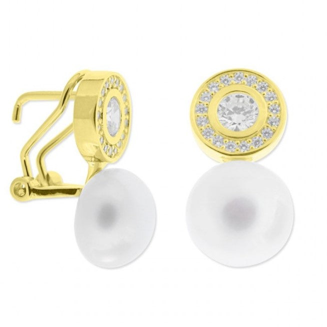 Pendientes de plata chapada en oro tú y yo con cierre omega con orla de circonitas