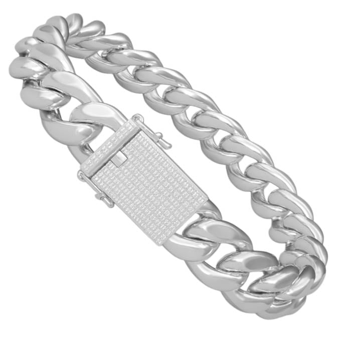 Pulsera cubana de plata de ley 925 con cierre microengaste iced, UNIDADES LIMITADAS