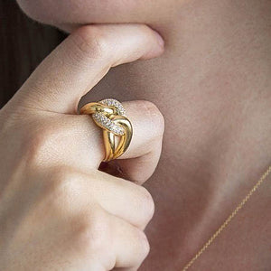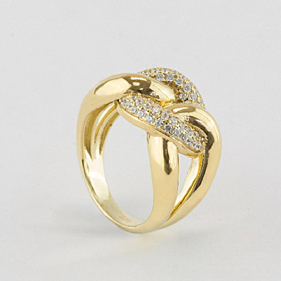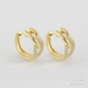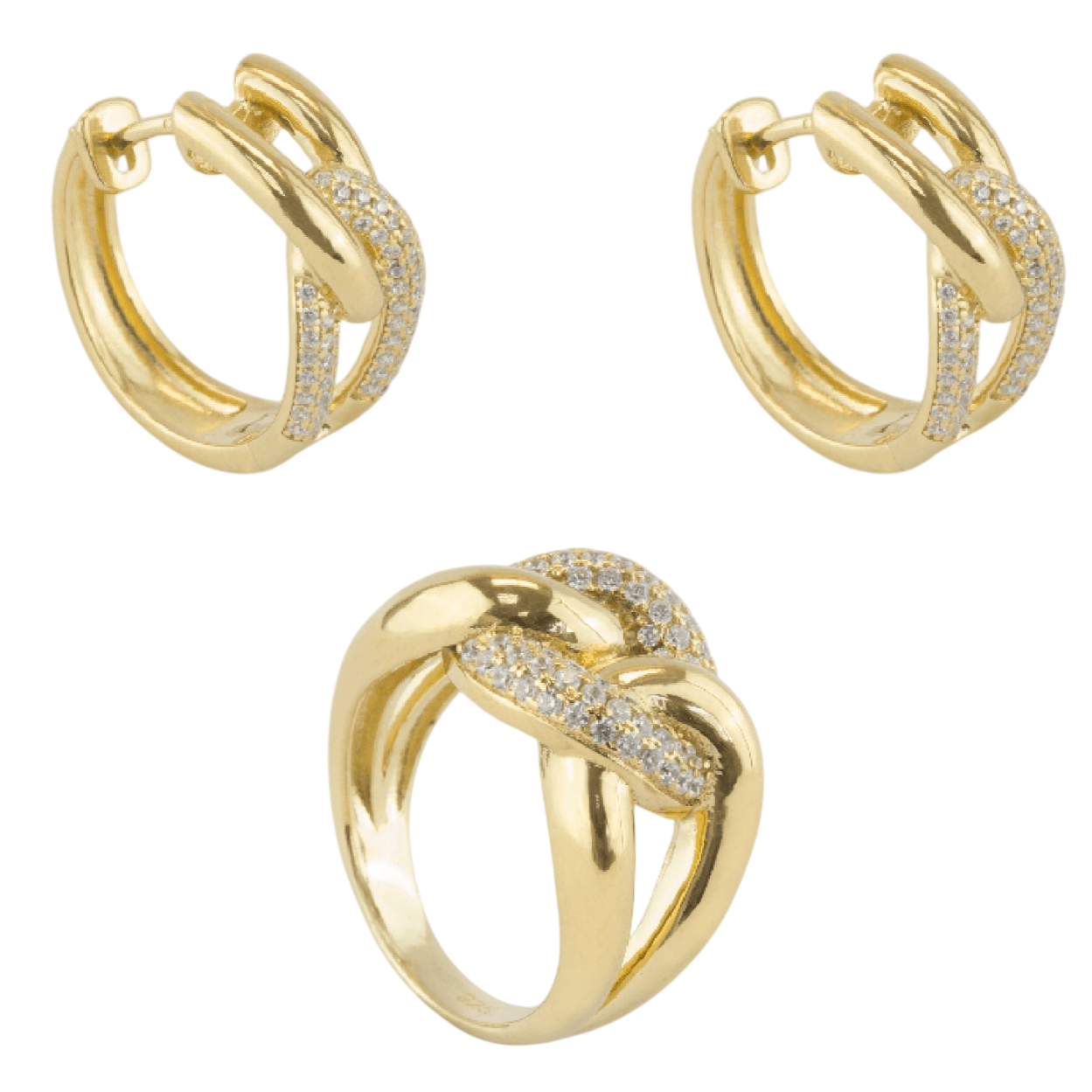Conjunto de Pendientes y anillo de plata de ley con formas entrelazadas chapados en oro con circonitas
