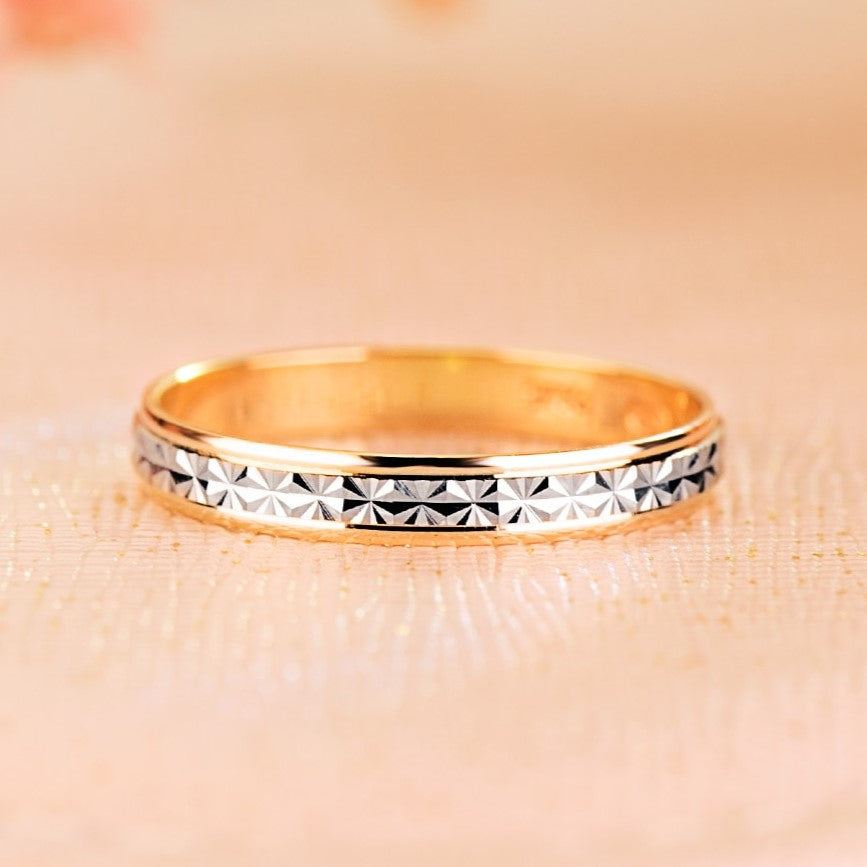 Alianza de oro 9 quilates bicolor con centro labrado