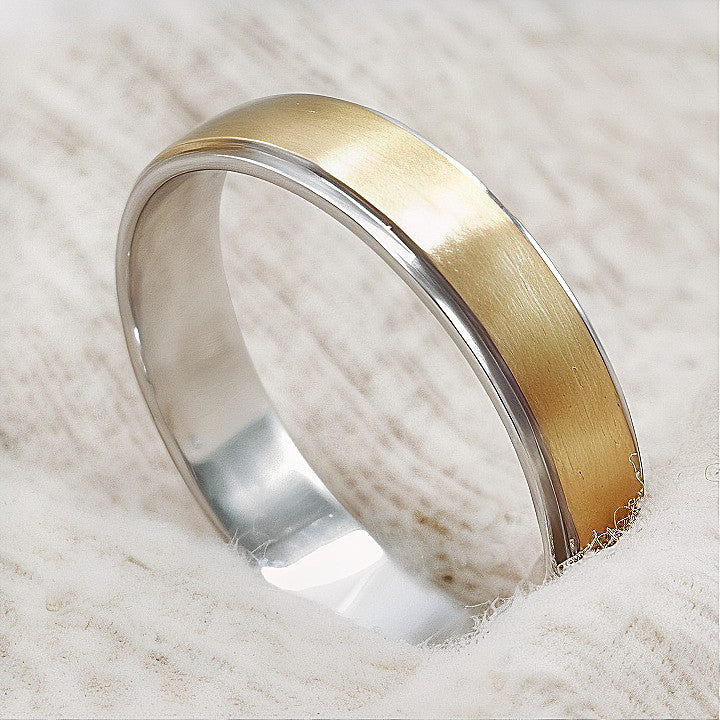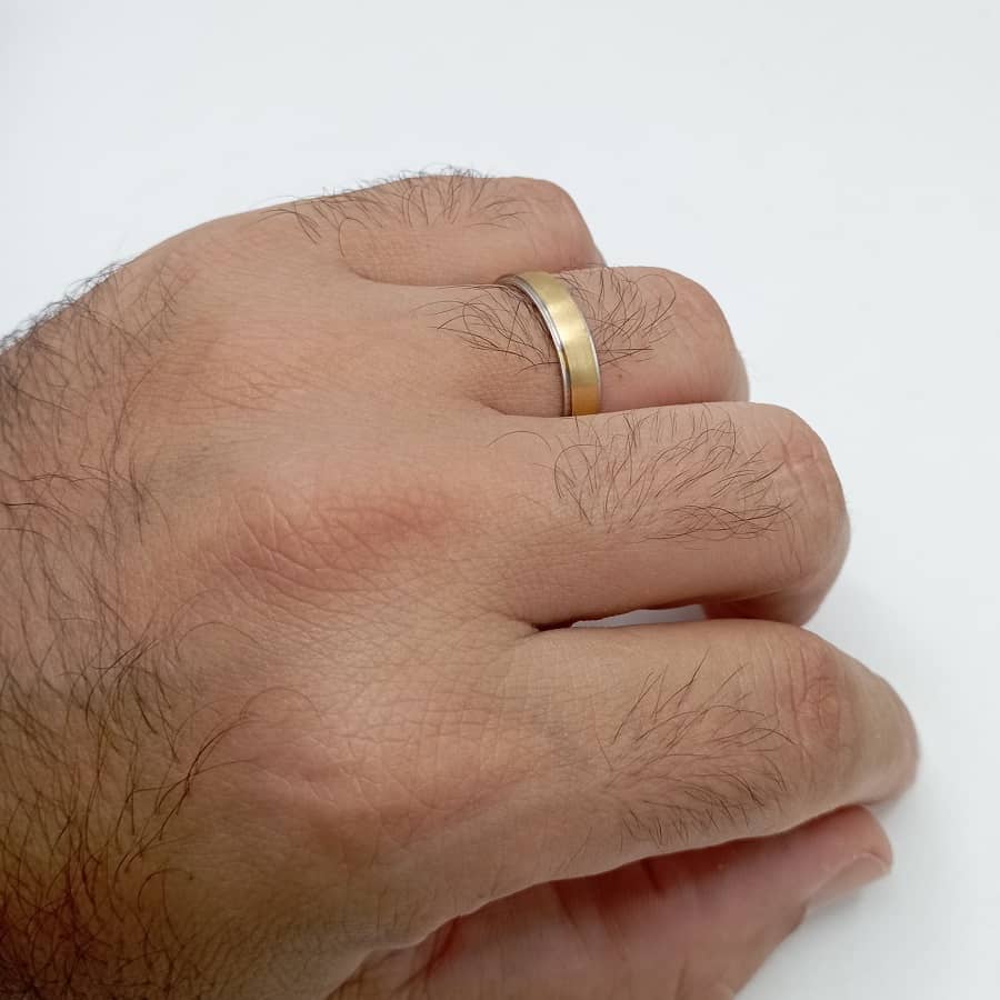 Alianza de oro 18k bicolor fabricada a mano de 4,5 mm de ancho