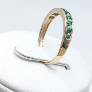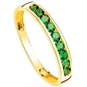 Anillo de oro 18k tira circonitas verdes en carril ancha