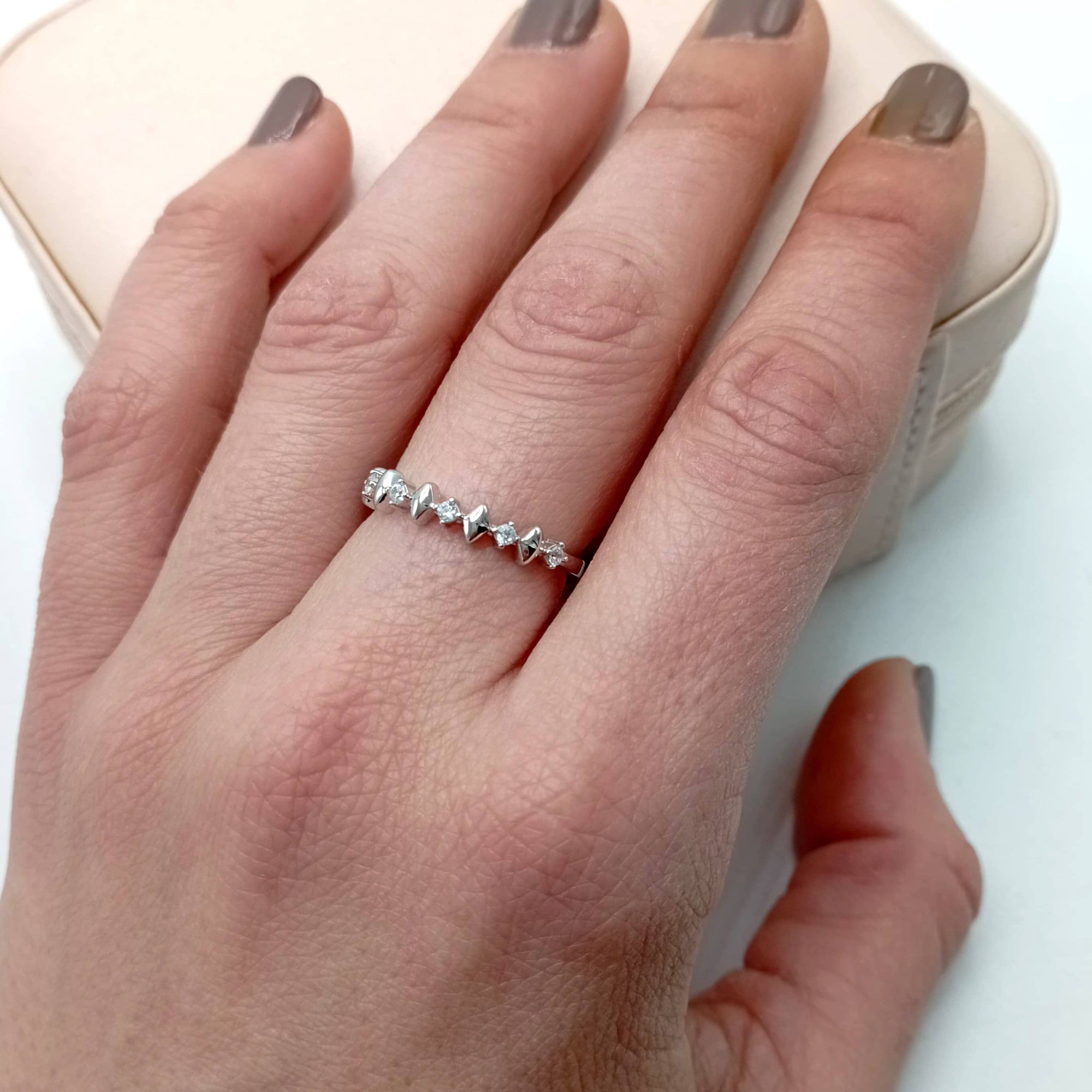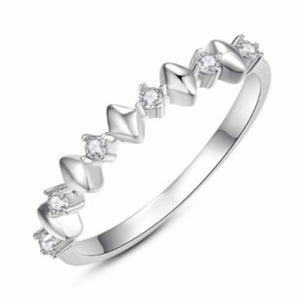 Anillo de Plata de Ley con circonitas y rombos intercalados