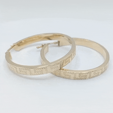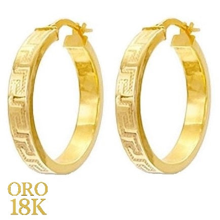 Par de aros de oro de ley 18k con dibujo de greca grandes