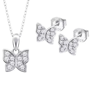 Pendientes y colgante de plata de ley Lotus Silver mariposas con microengaste de circonitas