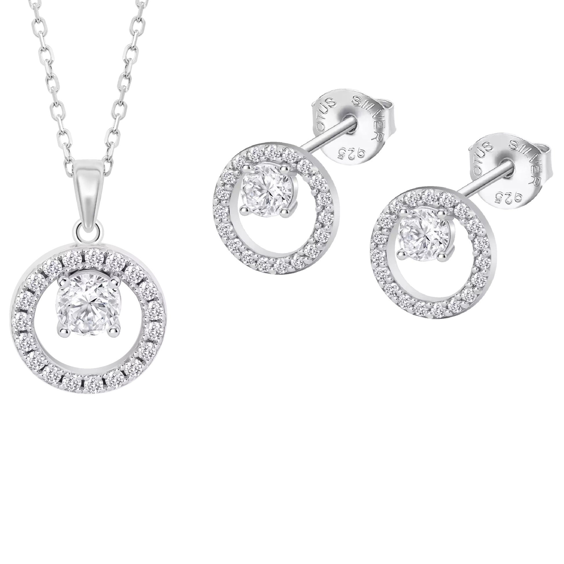 Pendientes y colgante de plata de ley Lotus Silver diseño círculos con circonitas