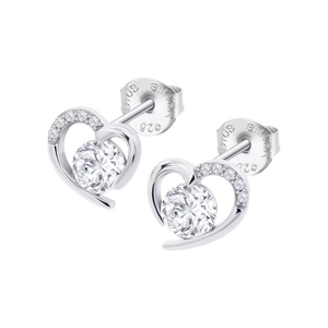 Pendientes y colgante de plata de ley Lotus Silver corazón circonita
