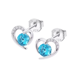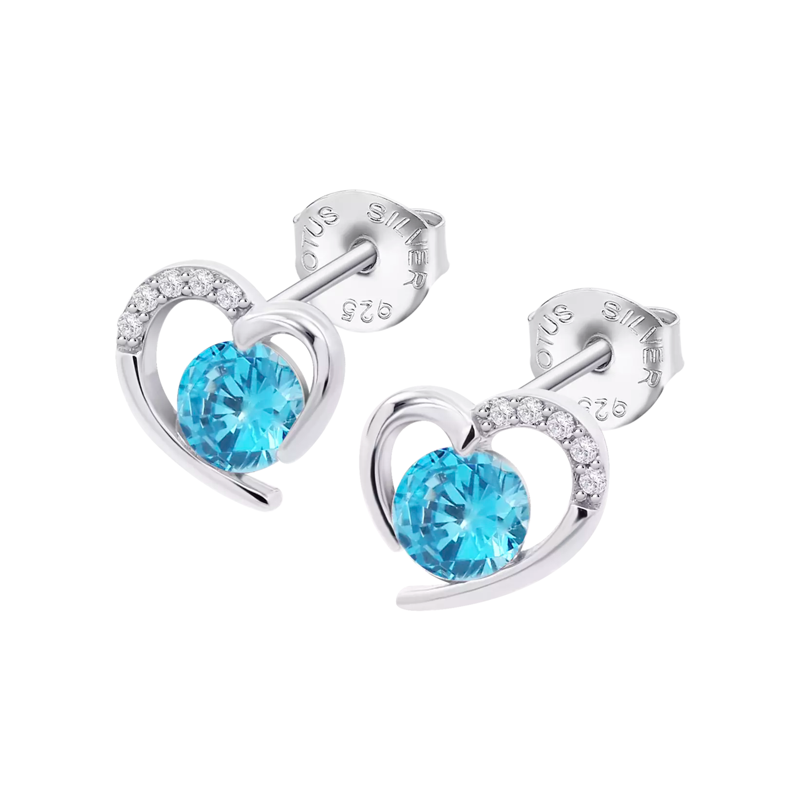 Pendientes y colgante de plata de ley Lotus Silver corazón circonita azul