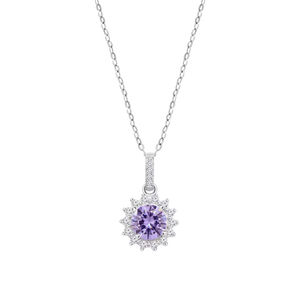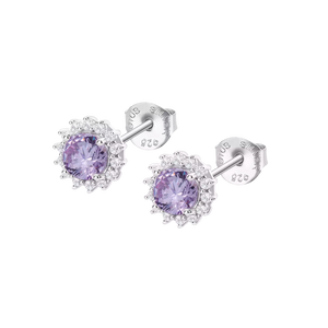 Pendientes y colgante de plata de ley Lotus Silver corazón rosetón pequeño lila