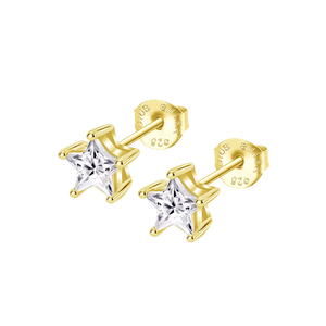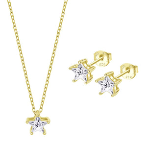 Pendientes y colgante de plata de ley Lotus Silver mini estrellitas con circonitas chapado en oro