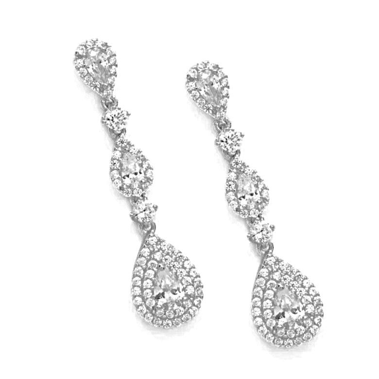 Pendientes de plata de ley largos con circonitas blancas perillas