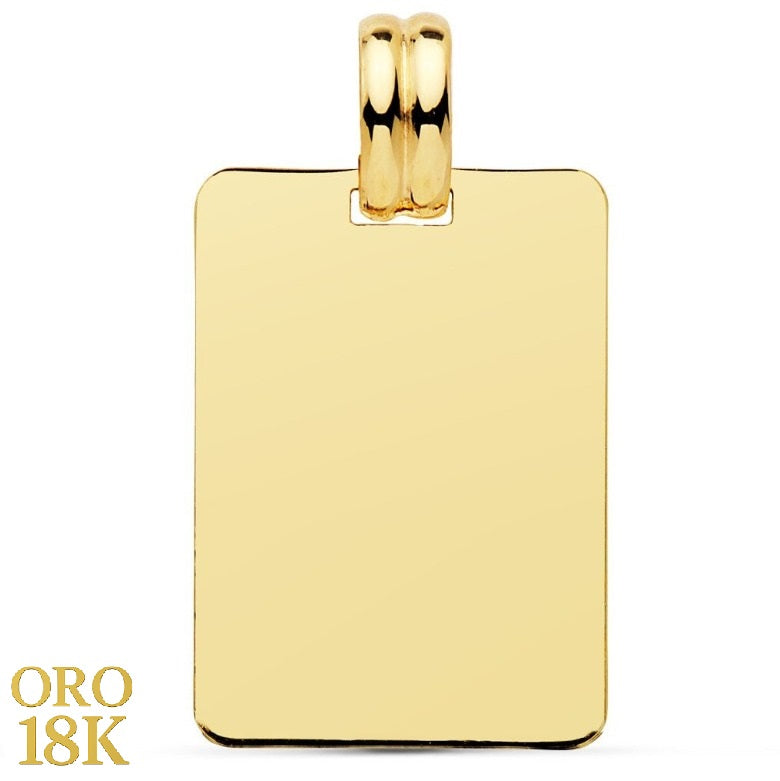 Colgante chapa de oro de ley 18k rectangular en acabado liso brillante
