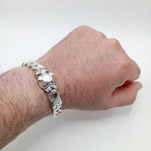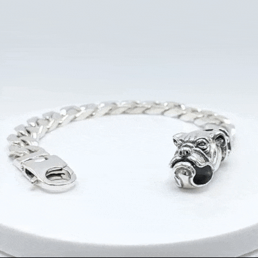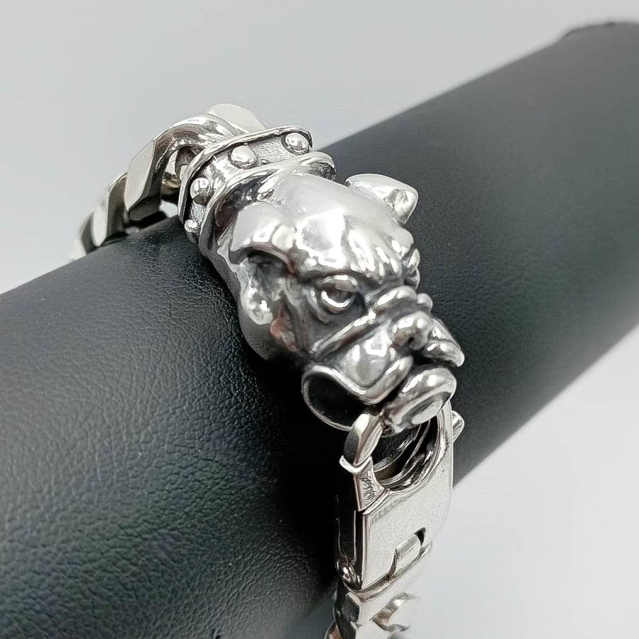 Pulsera cubana de plata de ley 925 maciza con cierre diseño cabeza de perro bull dog, UNIDADES LIMITADAS
