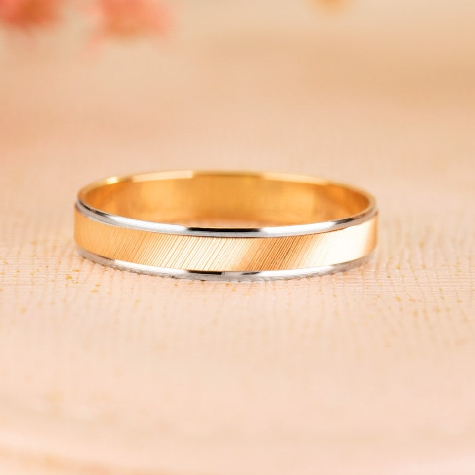 Alianza de oro 9 quilates con centro mate y bordes en oro blanco