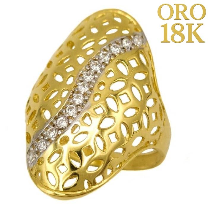 Este anel "lançadeira" em ouro 18k mede 30 mm em sua parte mais longa. Fabricado na Itália.