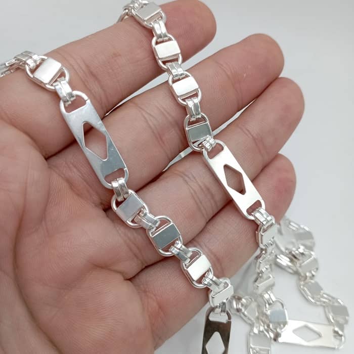 Cadena MACIZA de plata de ley 925 diseño articulado con figura rombo