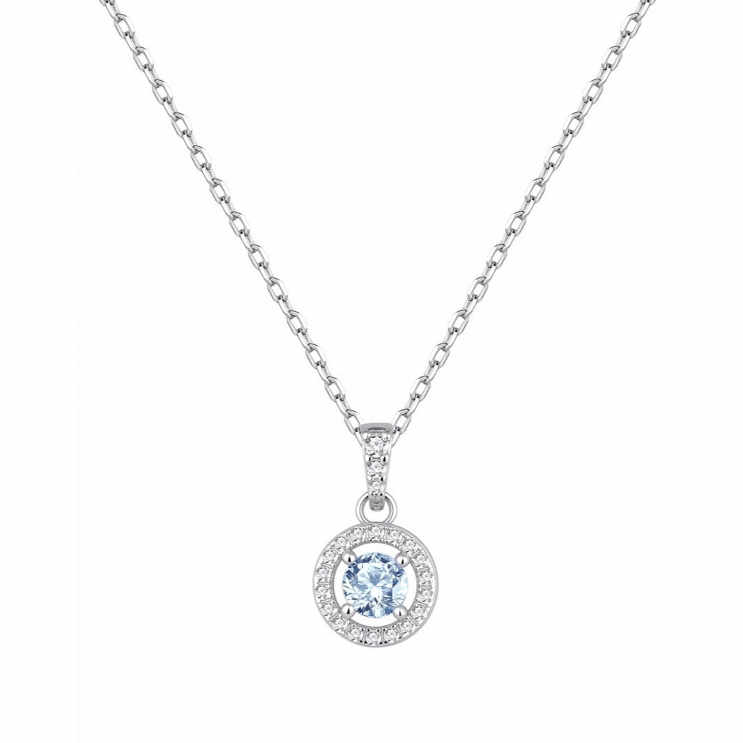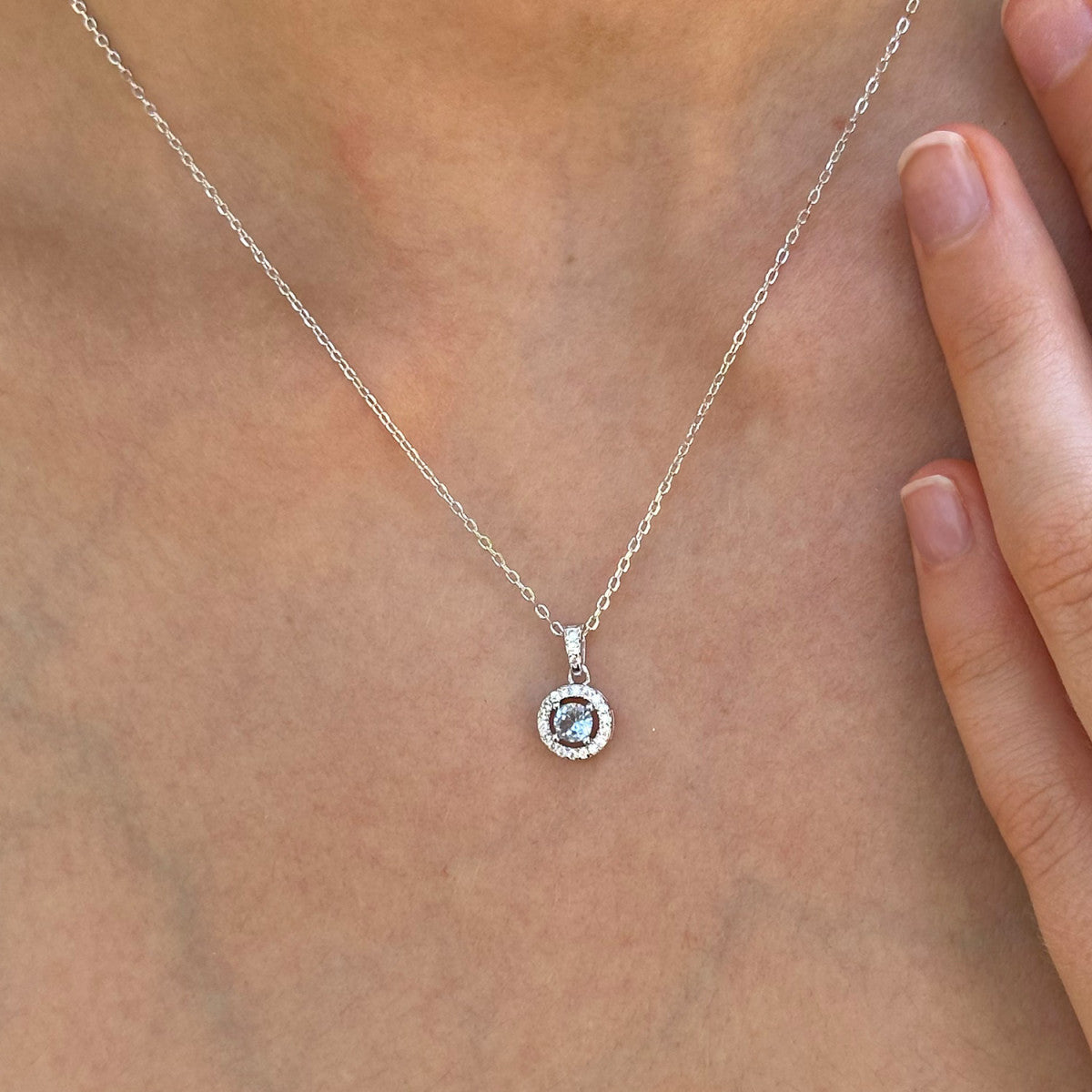 Gargantilla de plata con MINI colgante redondo con circonita color aguamarina