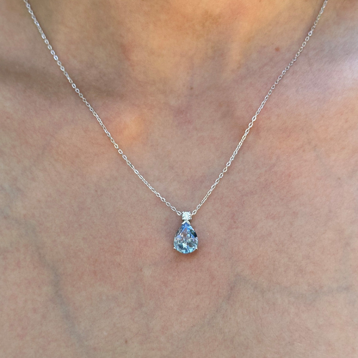 Gargantilla de plata con MINI colgante lágrima circonita color aguamarina