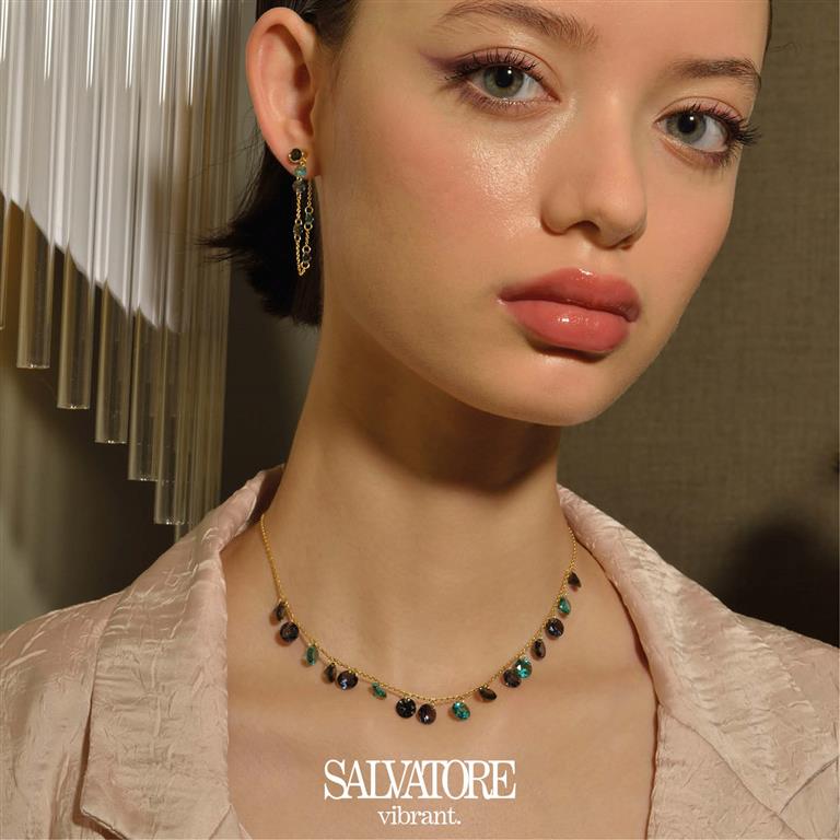 COLLAR PLATA CHAPADO DORADO CIRCONITAS TURMALINA VERDE