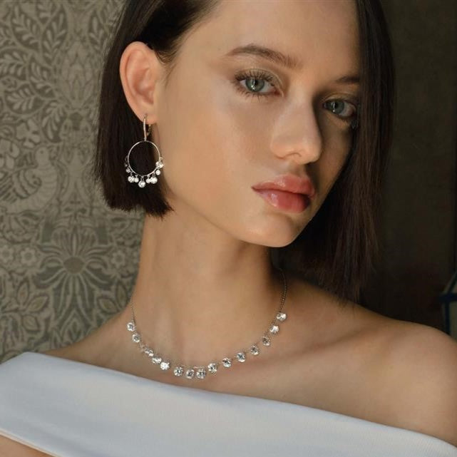 Pendientes de plata que constan de un aro con circonitas redondas colgando 136A0763