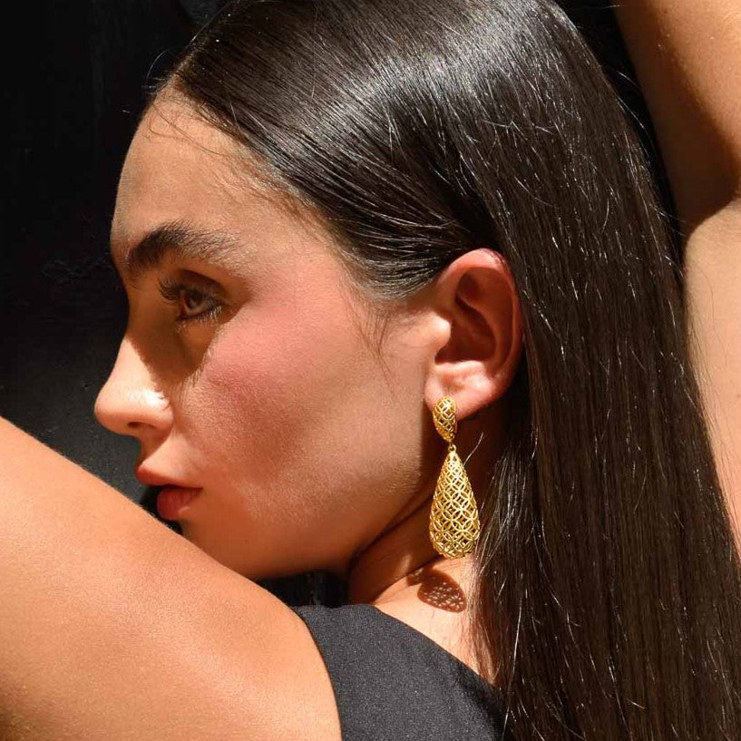 ENDIENTES PLATA chapada en oro PERA CALADO CON CIRCULOS ENTRELAZADOS MATE 151A0181