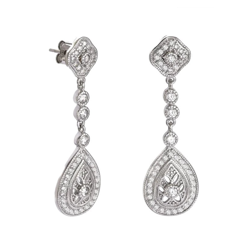 Pendientes de plata de ley largos con circonitas blancas calados