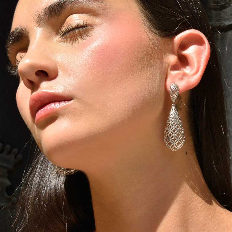 PENDIENTES PLATA RODIO PERA CALADO CON CIRCULOS ENTRELAZADOS MATE 151A0182