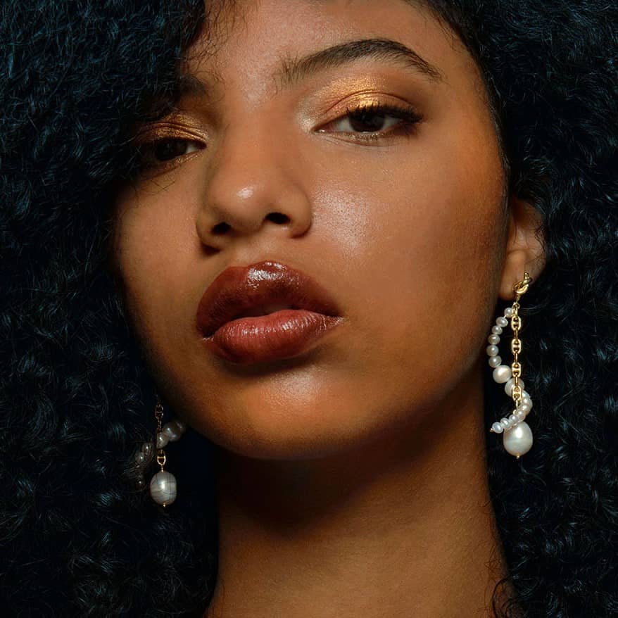 Pendientes de plata de ley bañada en oro largos con perlas