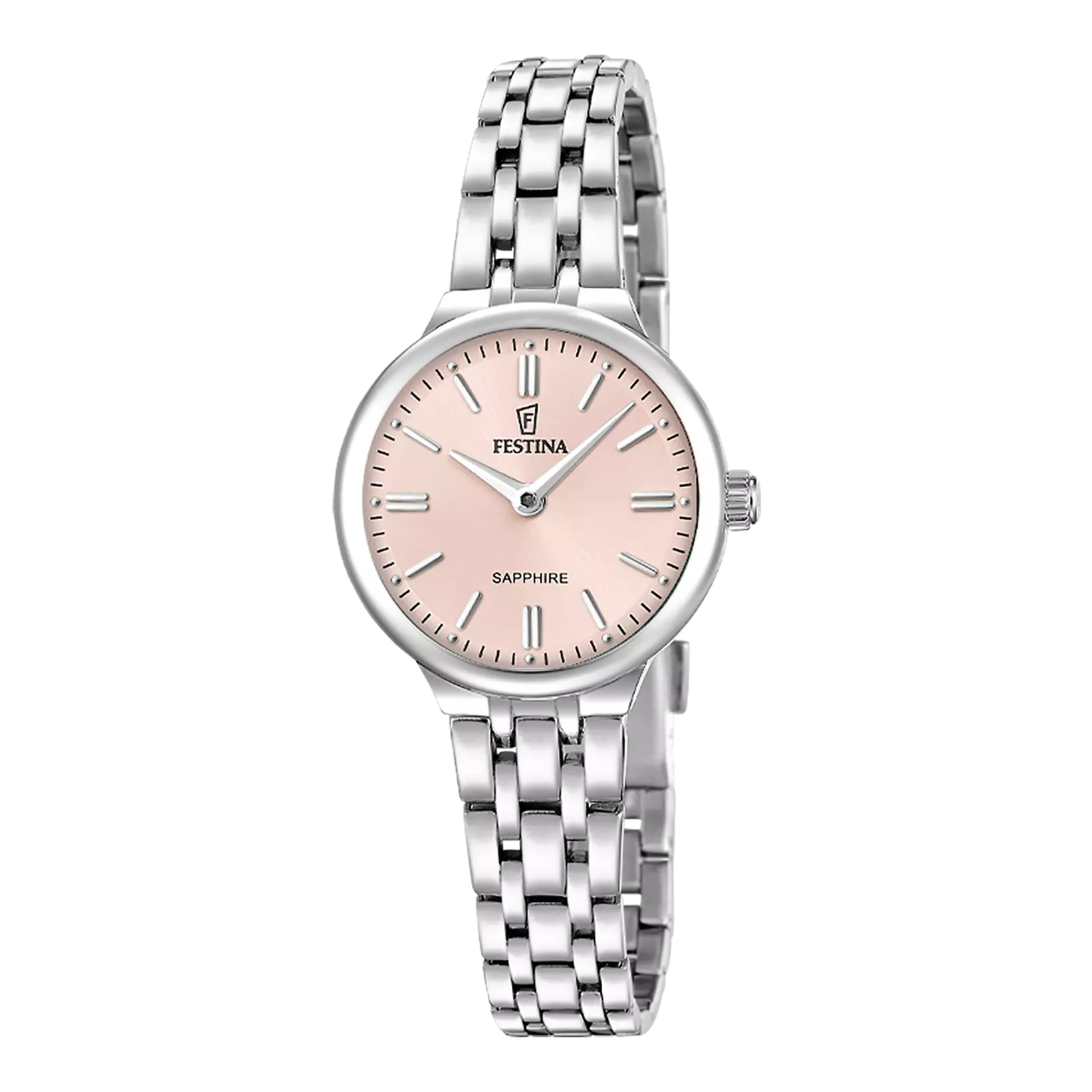 Acero inoxidable y cristal de zafiro.